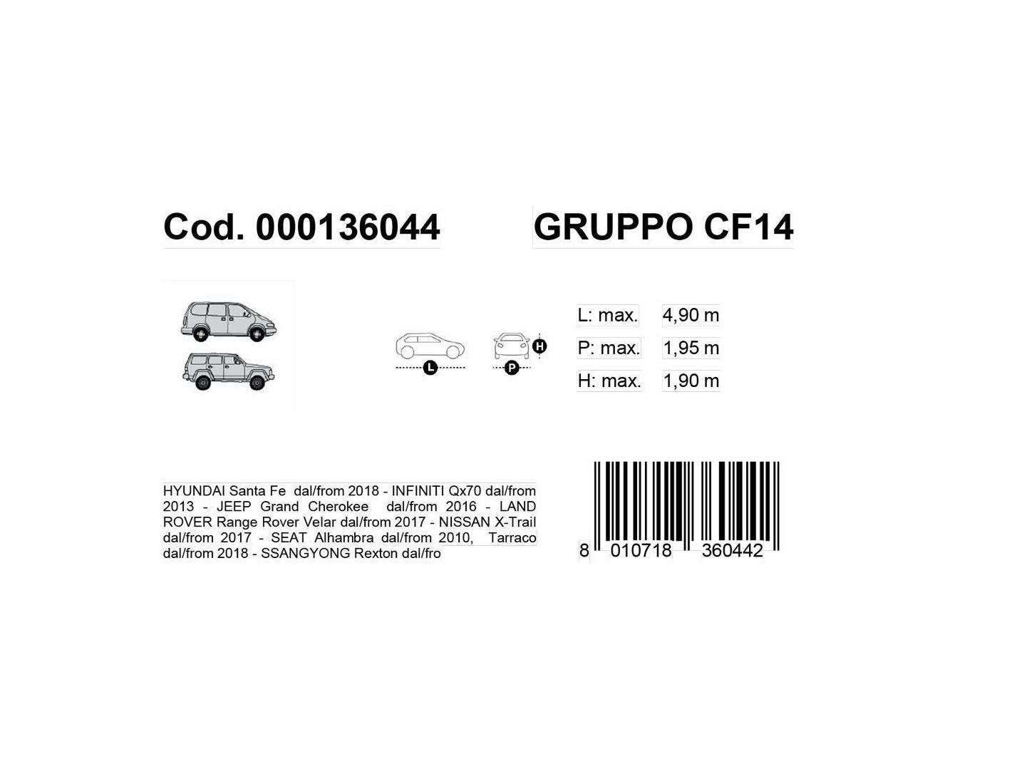 Copriauto Gabardine Car mod. VAN 14