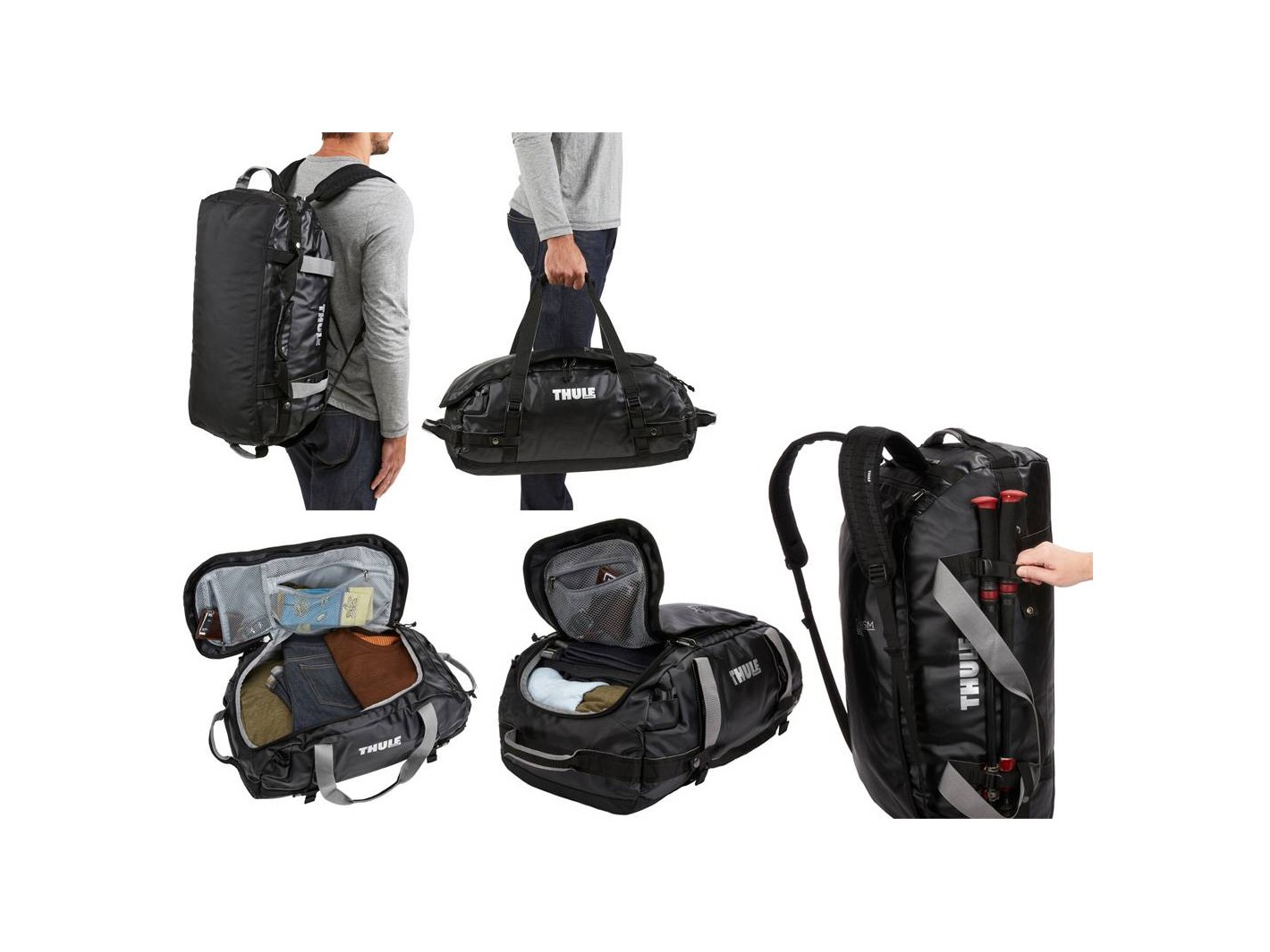Thule Chasm da 130 litri è un borsone resistente e impermeabile che si trasforma in uno zaino grazie alle cinghie che possono essere riposte dopo l'uso.