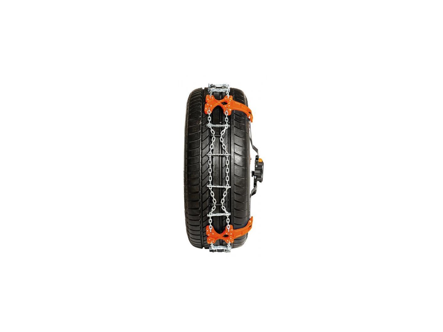 Catene da neve adatte a qualsiasi tipo di fuoristrada e SUV, compresi quelli che non accettano catene di tipo tradizionale a causa dello spazio ridotto tra pneumatici ed organi interni della ruota. UNIVERSALI: il montaggio avviene solo sulla parte esterna degli pneumatici senza interferire con gli organi meccanici interni della ruota (le catene Trak sono pertanto adatte anche per le vetture definite non catenabili dalle case automobilistiche). FACILI DA MONTARE: è sufficiente posizionare la cate na su una parte del pneumatico dopodiché, sfruttando l'avanzamento dell'automobile, Trak sale da sola sulla ruota senza essere toccata. Il fissaggio inoltre avviene solo sulla parte esterna delle ruote motrici per cui non sono necessarie difficoltose operazioni per allacciare la catena sulla parte interna della ruota. MASSIMA ADERENZA: Trak si autoregola, ciò consente una perfetta aderenza della catena al battistrada del pneumatico che si traduce in una guida sicura e silenziosa. ULTRA ROBUSTE: maglie in acciaio altolegato a sezione tonda di diametro 4 mm, cementate e zincate elettroliticamente, traversini in acciaio cementato e zincato, barre rinforzanti in acciaio al boro e tenditore autotensionante in mescola. CONFORMI ALLE NORMATIVE VIGENTI: le catene TRAK sono certificate ON V 5117. Adatte per le seguenti misure di pneumatico: 205/60-17, 205/65-16, 235/35-20, 245/50-17, 275/30-20, 285/30-20.